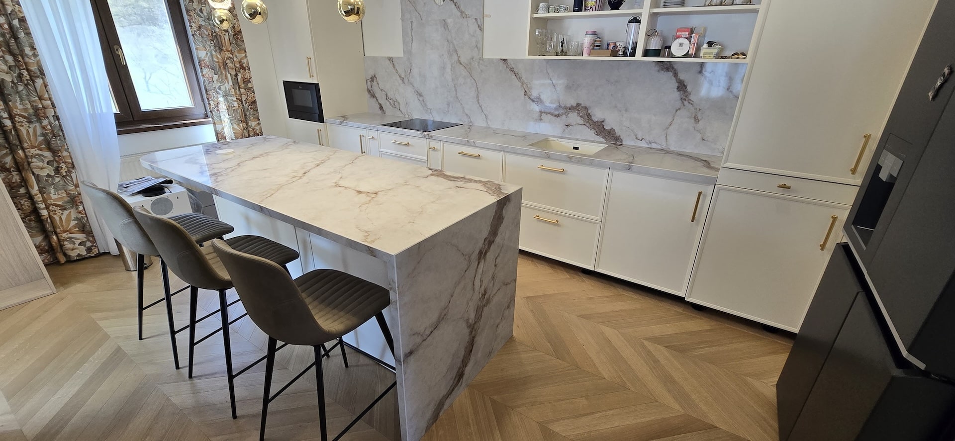 - Material: Arbeitsplatten aus Quarzstein