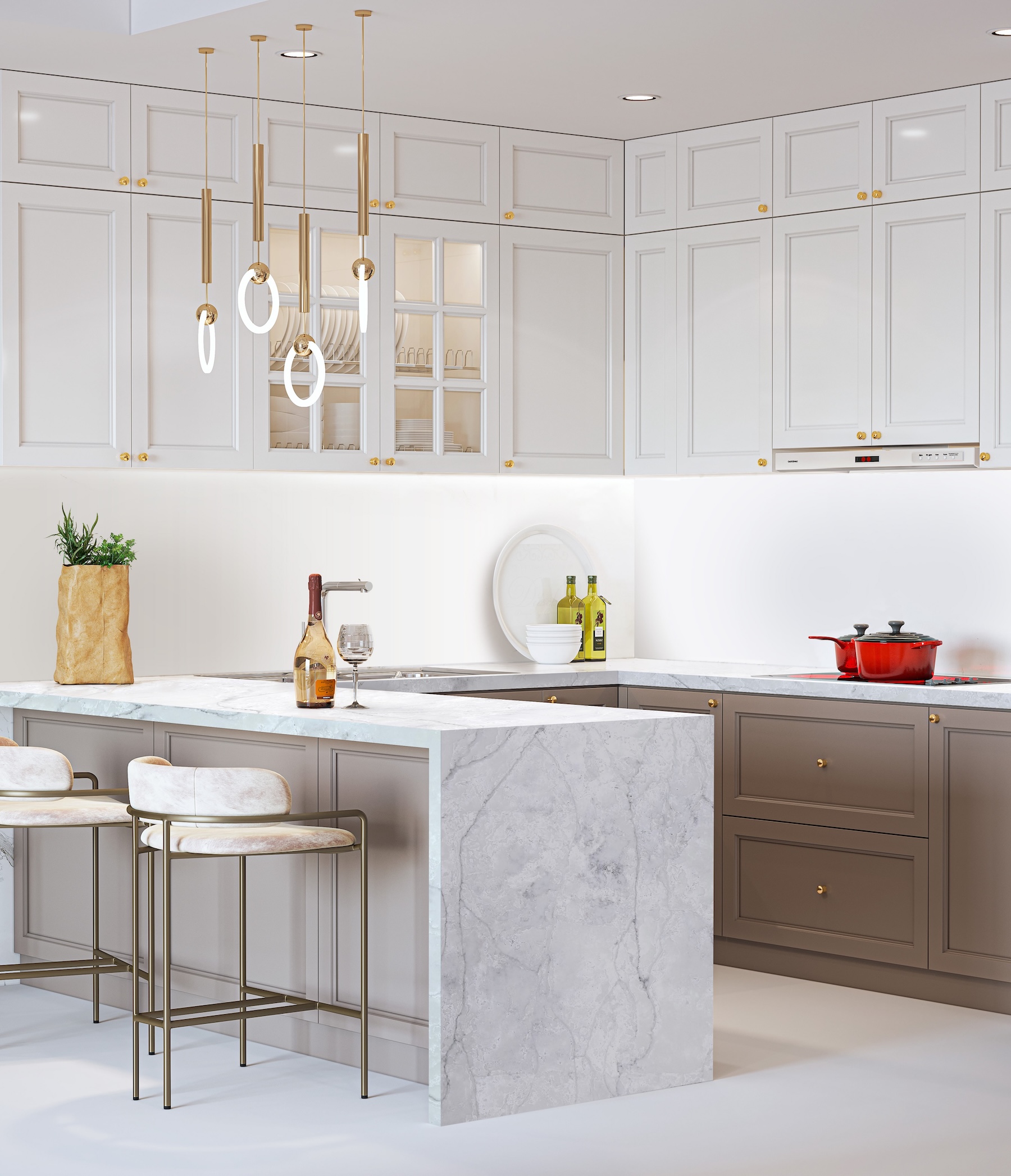 - Material: Arbeitsplatten aus Quarzstein